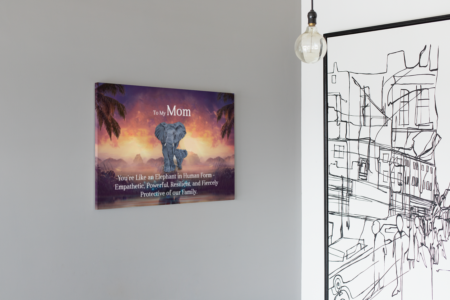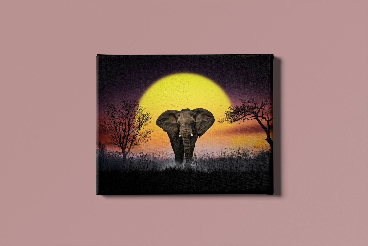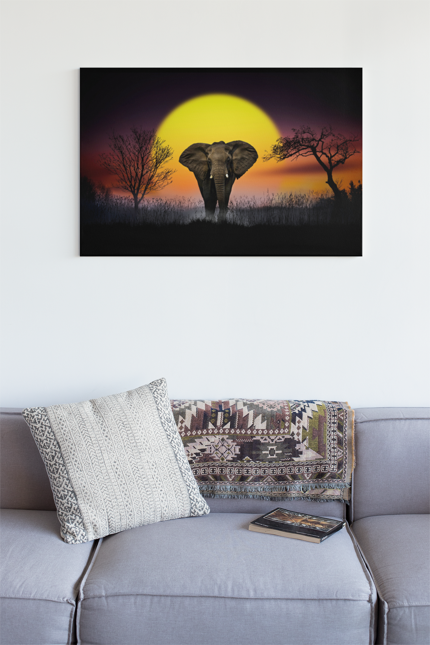 Canva | Elephant And The Sunrise | Landscape Canvas .75in Frame | CC