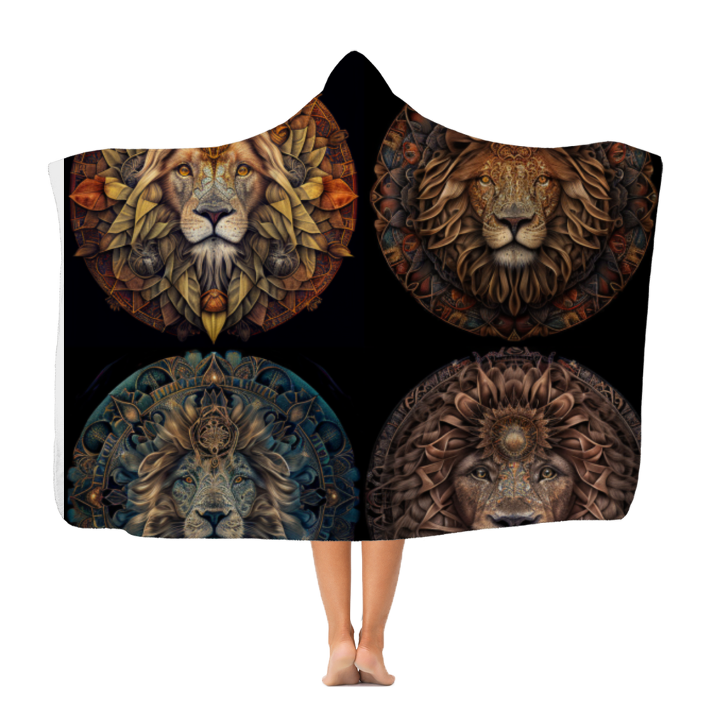 Four Lion Heads Classic Adult Hooded Blanket | AOP