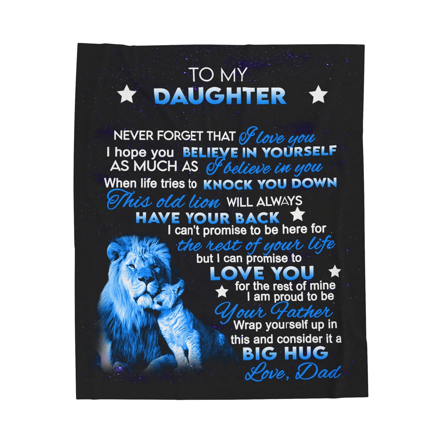 To My Daughter - Lion & Cub - Velveteen Plush Blanket
