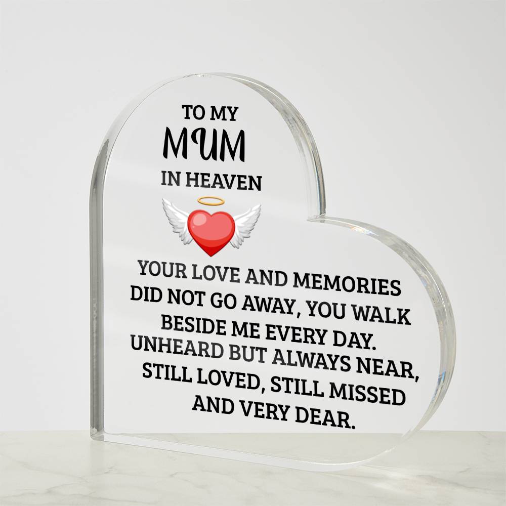 To My Mum in Heaven | Walk Besides Me | Printed Heart Shaped Acrylic Plaque!